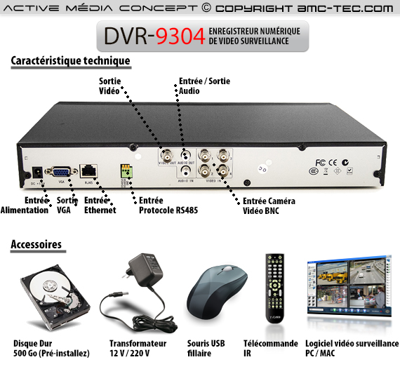 L'interface et le menu de l'enregistreur de video surveillance est en français. Les enregistreurs de vidéo surveillance offrent la prise en charge de toutes les caméras de vidéo surveillance avec la sortie vidéo de type BNC et les caméras PTZ (avec protocole RS485).