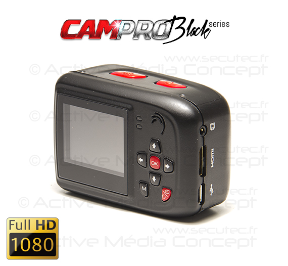 La caméra CAM-PRO-BLACK-SERIES vous est fournie avec un caisson étanche capable de résister à une utilisation sous l'eau jusqu'à 60 mètres de profondeur, et à des chutes d'une hauteur de 2 mètres. Ce caisson ne bride en rien l'utilisation de la caméra, tous les boutons étant toujours accessibles.