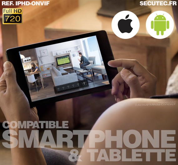 Elle dispose de plus d'une interface Ethernet RJ45 filaire, permettant à la caméra d'être disponible sur le réseau, et ainsi accessible à distance via une application mobile ou un logiciel pour votre ordinateur (fournie).