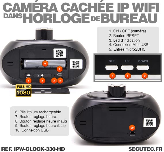 La caméra horloge IPW-CLOCK-330-HD est conçue autour d'un capteur couleur 1 Mégapixels, permettant de visionner en temps réel en qualité 1080P (1920×1080 pixels) et d'enregistrer les vidéos avec une qualité en 1080P (1920×1080 pixels @ 30 images par secondes).