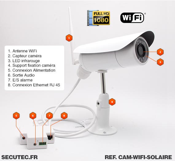 Système de vidéo surveillance solaire waterproof et totalement autonome, composé par: