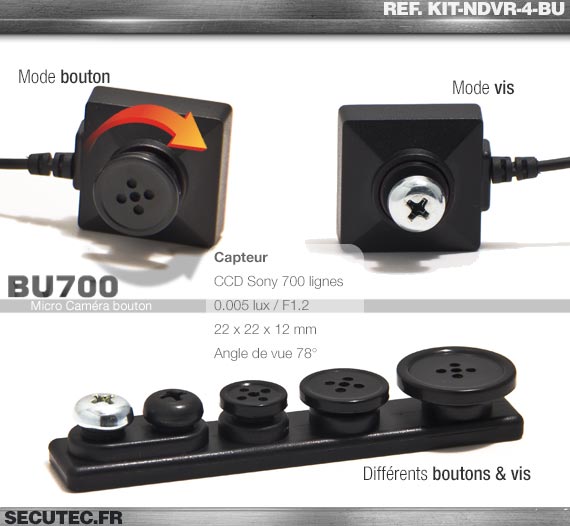 Inclus dans ce pack 4 caméras micro caméra type vis ref.BU700