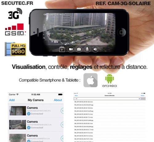 • accès via 3G : audio/vidéo en temps réel , configuration et accès aux enregistrements