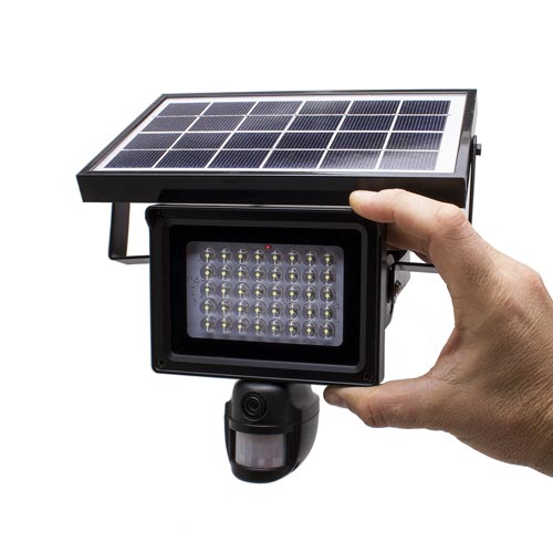 Situé dessous le projecteur LED une micro caméra orientable manuellement avec un détecteur de mouvement de chaleur PIR.