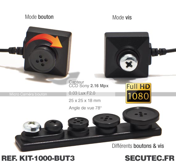 L'avantage essentiel de cette caméra miniaturisée vient de sa conception plate et de son objectif fileté de type "pinhole" (trou d'épingle), ce qui vous permettra d'adapter des embouts "vis ou boutons" selon son usage.