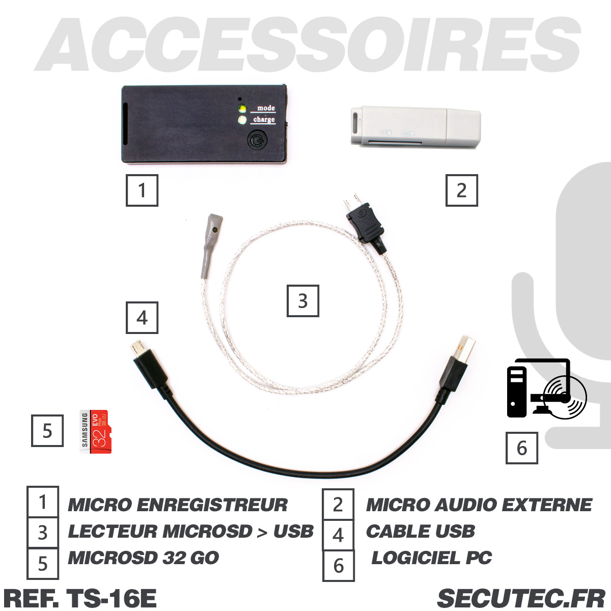 Livrée avec l'enregistreur un micro externe permettant de déporté le microphone dans une zone discrète.