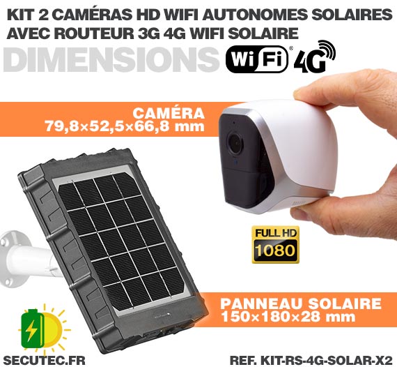 Kit de vidéosurveillance 100% autonome composé de 2 smart caméra solaire IP Wi-Fi HD 1080P et d'un routeur 3G/4G industriel avec panneau solaire et batterie, idéal pour surveiller une maison, un bâtiment ou une résidence secondaire, s'il n'y pas de connexion par box internet et d'alimentation.