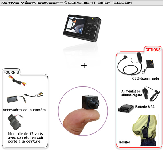 Véritable matériel de professionnel les résultats sont garanties en terme d'image et de prise son. Par sa petitesse ce système est utilisé par de nombreux secteurs d'activités, vidéo surveillance, matériel pour agent de recherche, blagues caméra cachée, etc ect....