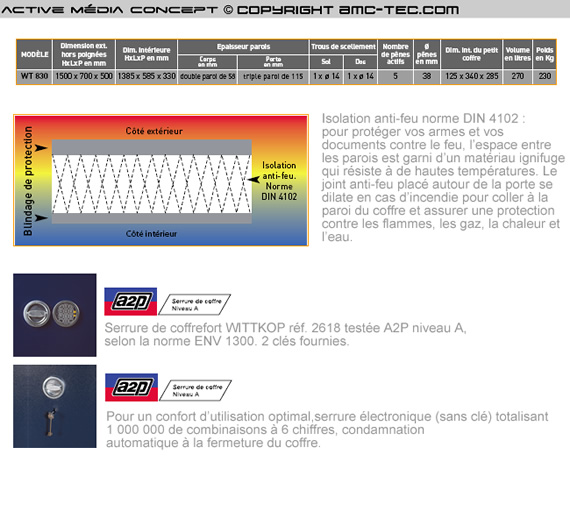 Le COFFRE-FORT-830 pour armes très haute sécurité vous permettra d'entreposer vos armes. En effet le COFFRE-FORT-830 vous offrira une double protection anti-effraction et anti-feu ainsi qu'un blindage anti-percçage.