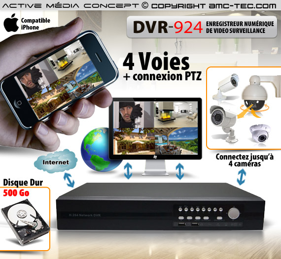 L'enregistreur de vidéo surveillance DVR-924 enregistre à la détection de mouvement par analyse d'image.