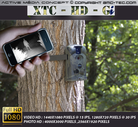 Caméra de vidéo surveillance GSM sans fil, pour Professionnel et Particulier. La caméra XTC-HD-GI est redoutable, elle intègre une caméra HD, un module GSM et un système d'enregistrement vidéo et photo sur carte SDHC. Le capteur CMOS de la caméra HD est de 12 millions de pixels, cela permet d'obtenir des photos HQ d'une résolution maximale de 4000 × 3000 pixels et une résolution Video en Full HD de 1440 X 1080 à 15 images par seconde. Le système d'enregistrement vidéo et photo enregistre sur carte mémoire SDHC pouvant aller jusqu'à 32 Go. Le module GSM est intégré dans la caméra pour permettre d'envoyer des photos MMS, en temps réel dès détection, par simple demande ou programmation.